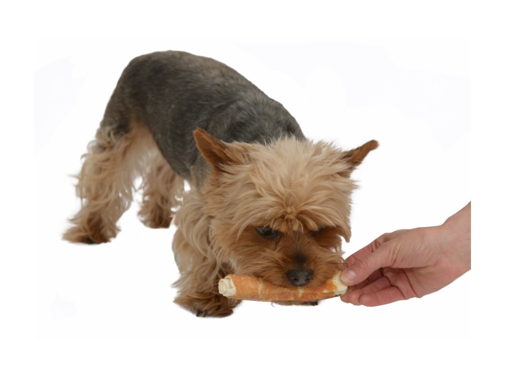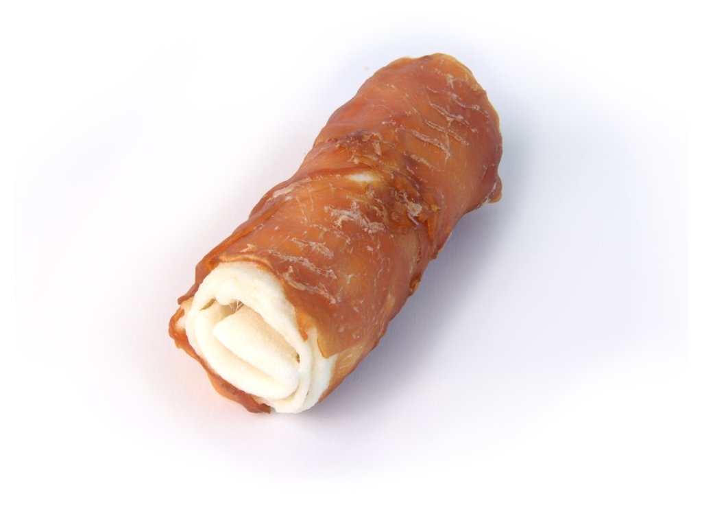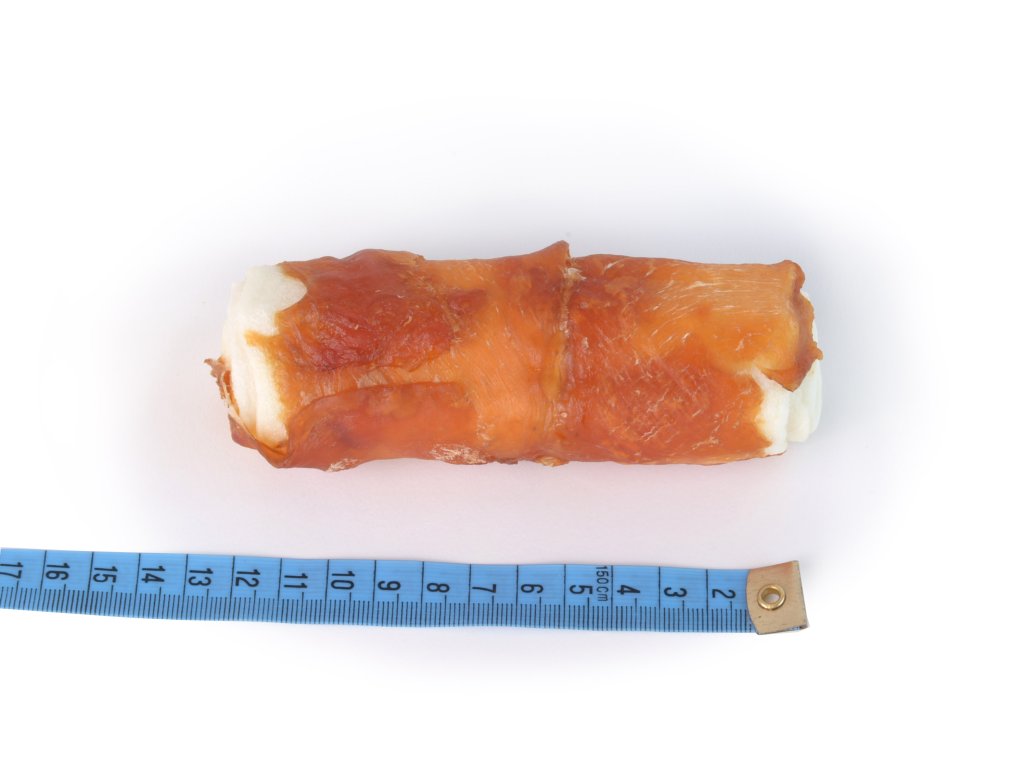 Složení: kuřecí maso, hovězí kůže, škrob, sorbitol, glycerin.